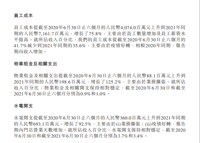而房租一项的涨幅更是惊人,从2020年同期的8810万直接增长125%到了1.98亿,房租半年翻倍。