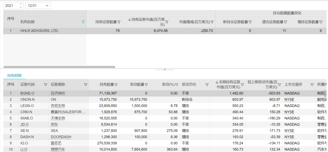 受中美关系的影响,中概股一直走势不佳。从去年三季度开始,HHLR Advisors就开始对中概股的减持止血。高瓴去年四季度清仓了阿里巴巴和哔哩哔哩,并砍掉了拼多多近9成仓位。还有boss直聘和蔚来也是砍仓一半。