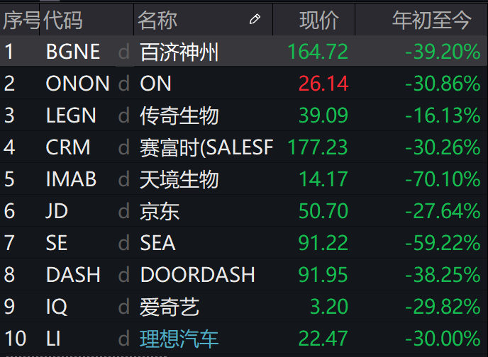 前十大重仓股分别为百济神州、On昂跑、传奇生物、Salesforce、天境生物、京东、SEA、DoorDash、爱奇艺和理想汽车。其中6只为中概股。高瓴的前十大重仓股的合计持仓市值约为46亿美元,占总持仓比例约为71%。