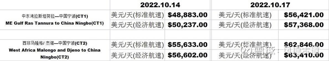 这主要由于,近期VLCC的运价正在持续暴涨,中东湾到中国宁波的航线,10月14日至10月18日的航线价格大涨了2.1万美金。