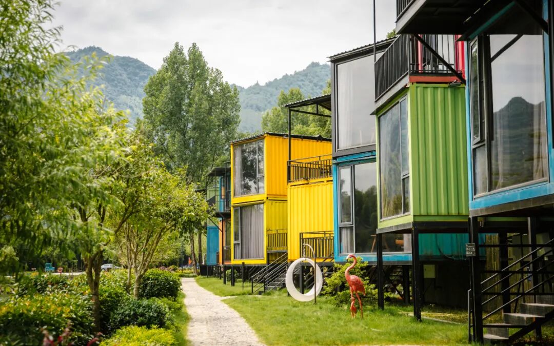 在水一方集装箱民宿由39个彩虹色集装箱组成,周边环境依山傍水,闹中取静,风光绮丽。水上运动主题、竹林主题、瓦雕主题、刺绣主题、和风主题、泼墨山水及冬季雪景主题等不同主题带来截然不同的住宿感受。