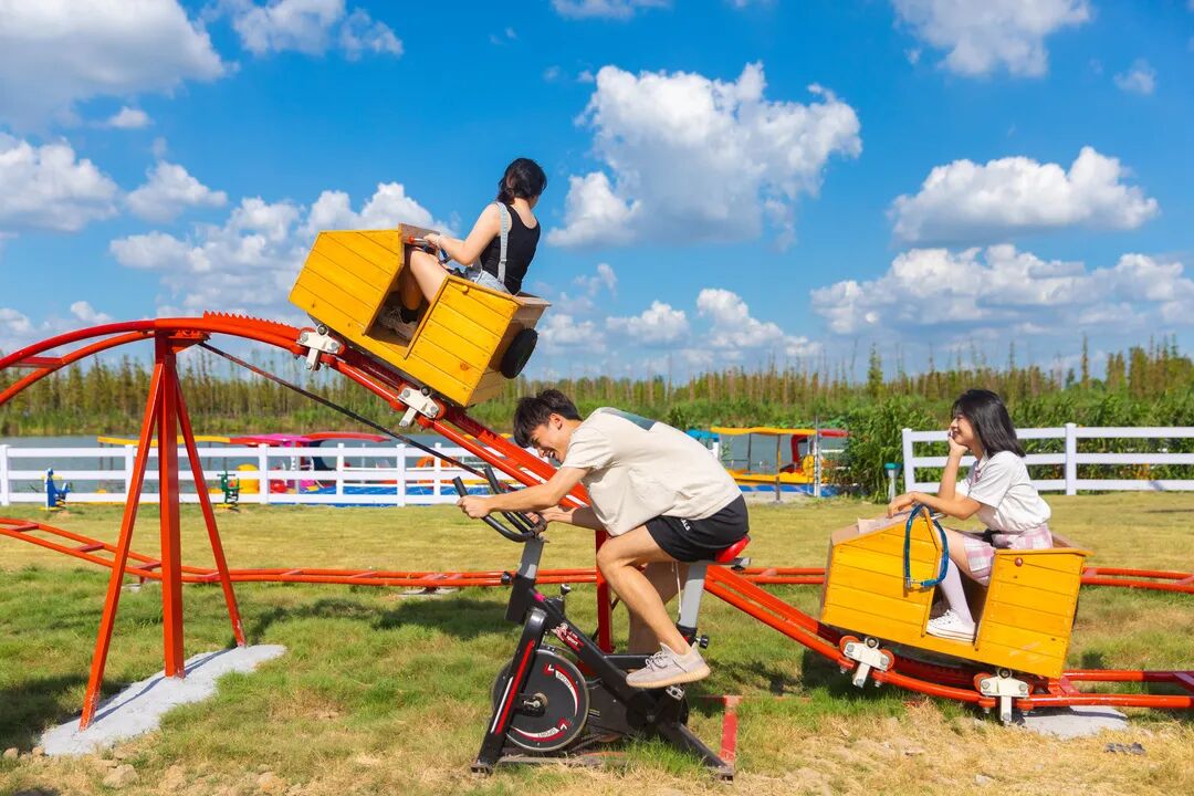 极具挑战性的设计,加上碧绿青青的湖面,快来坐上皮划艇肆意放飞,把烦恼统统甩在脑后!玩累了坐一坐悠闲的脚踏船!