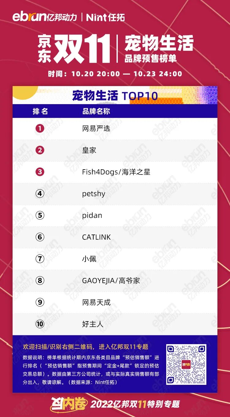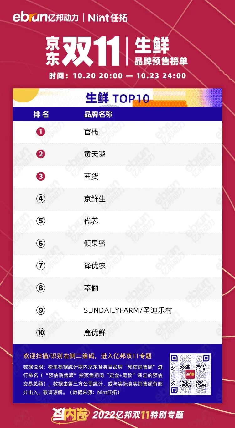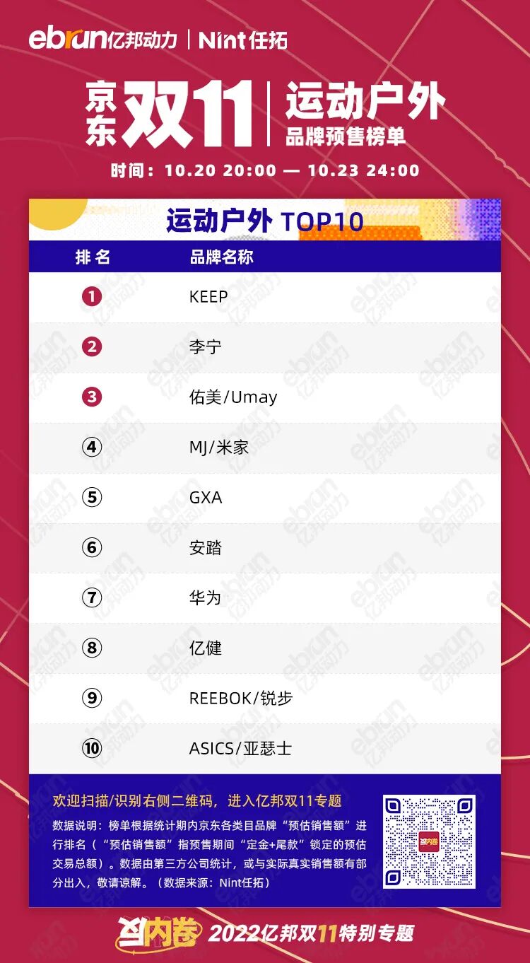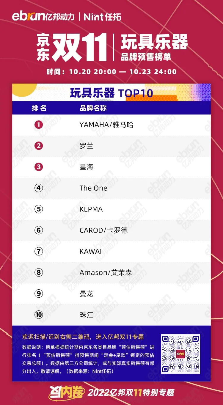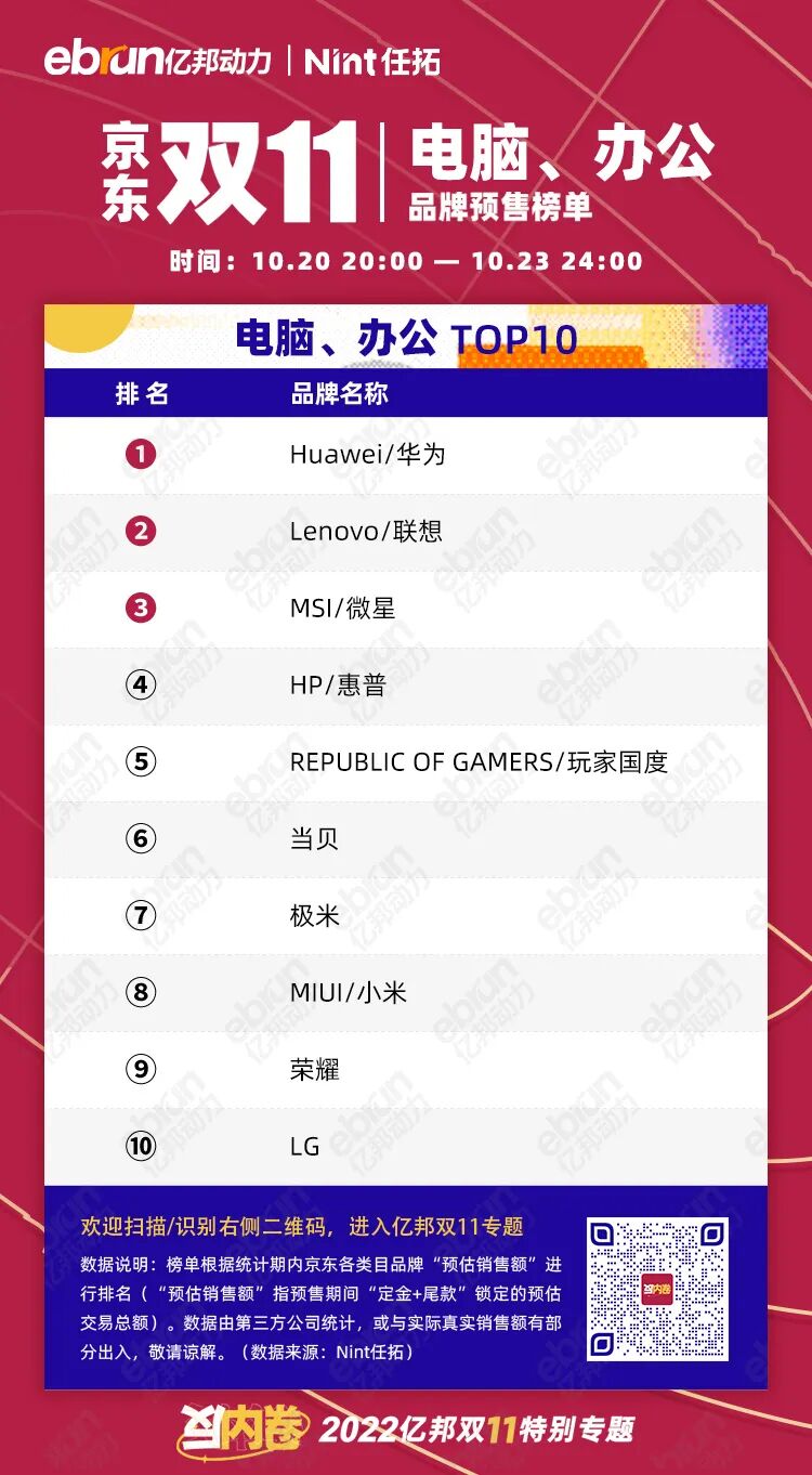 榜单根据统计期内京东各类目品牌“预估销售额”进行排名(“预估销售额”指预售期间“定金+尾款”锁定的预估交易总额)。数据由第三方公司统计,或与实际真实销售额有部分出入,敬请谅解。(数据来源:Nint任拓)