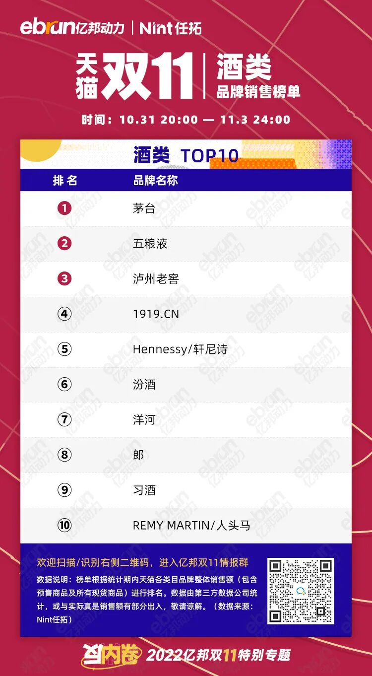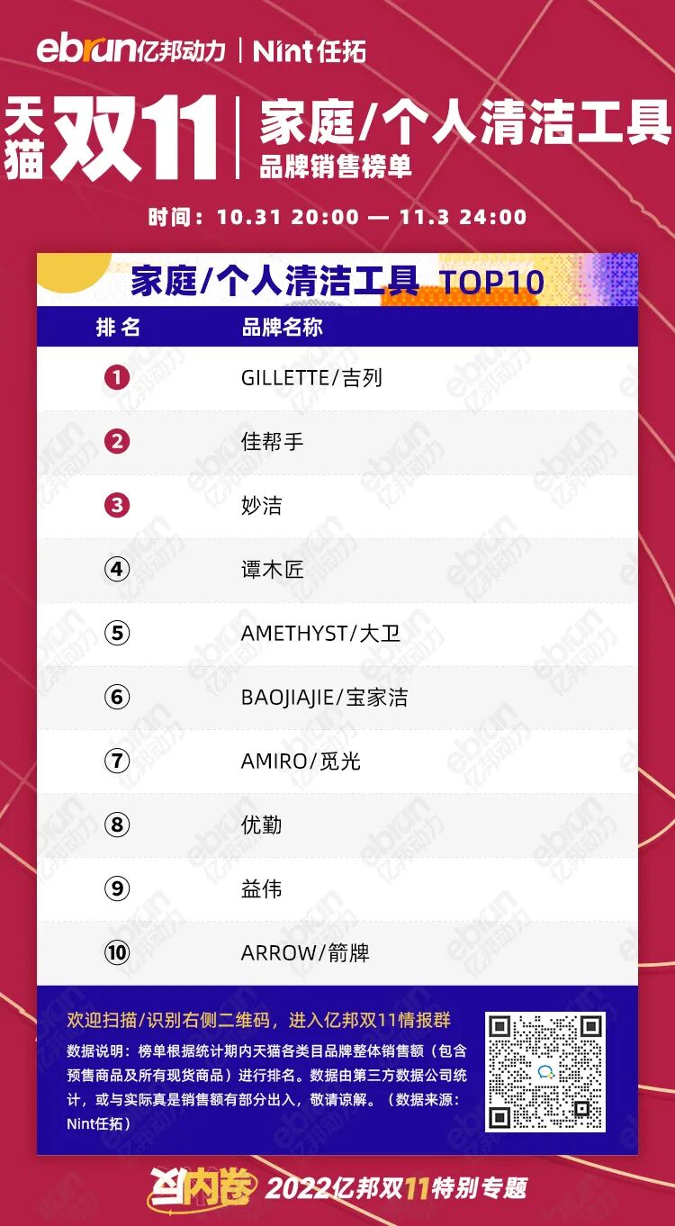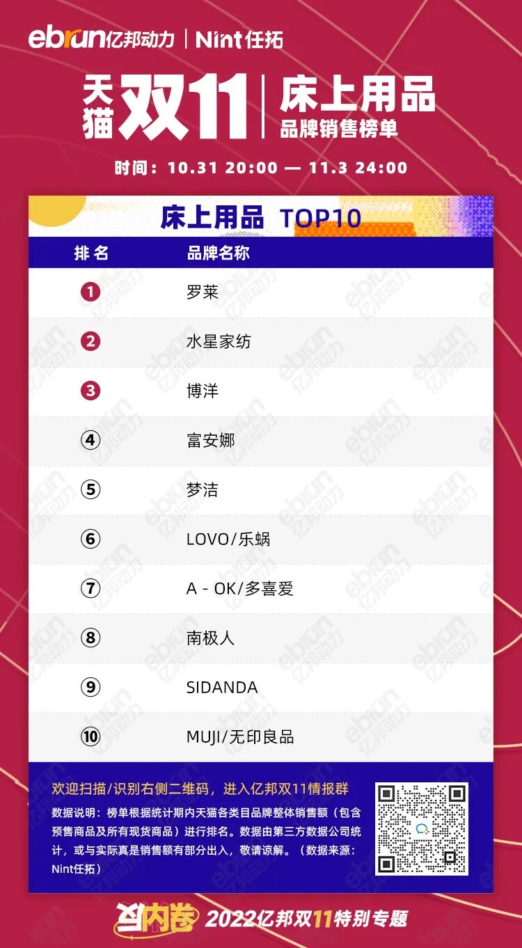 榜单根据统计期内天猫各类目品牌整体销售额(包含预售商品及所有现货商品)进行排名。数据由第三方数据公司统计,或与实际真是销售额有部分出入,敬请谅解。(数据来源:Nint任拓)