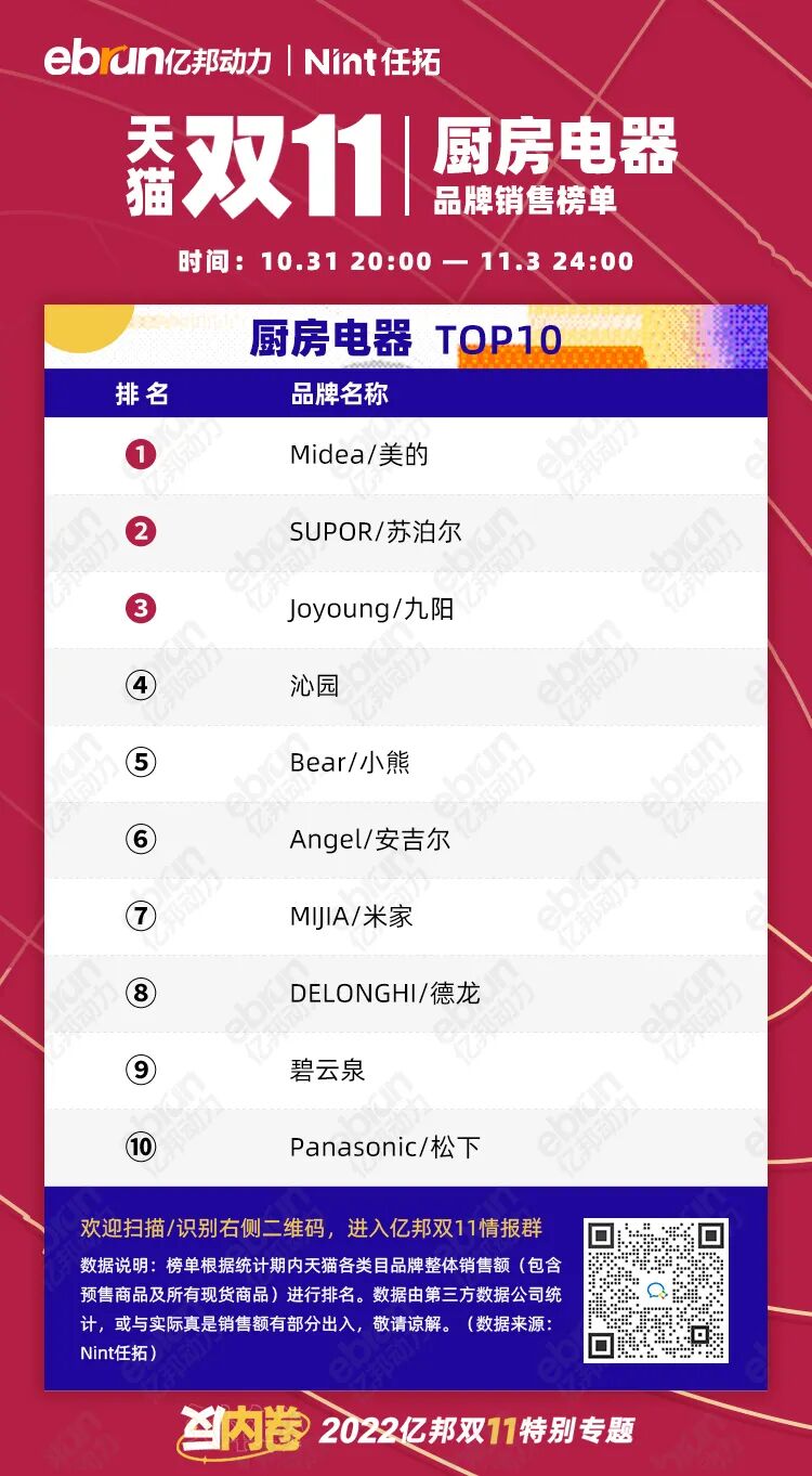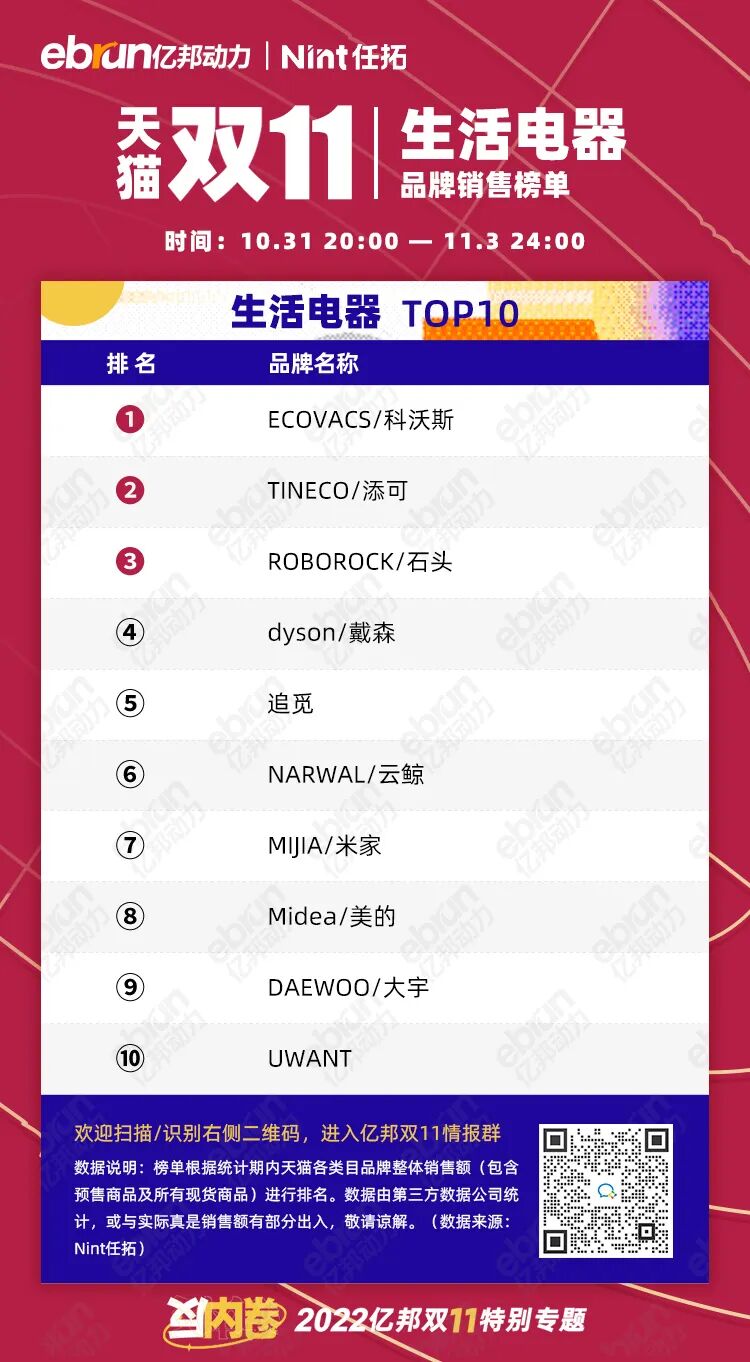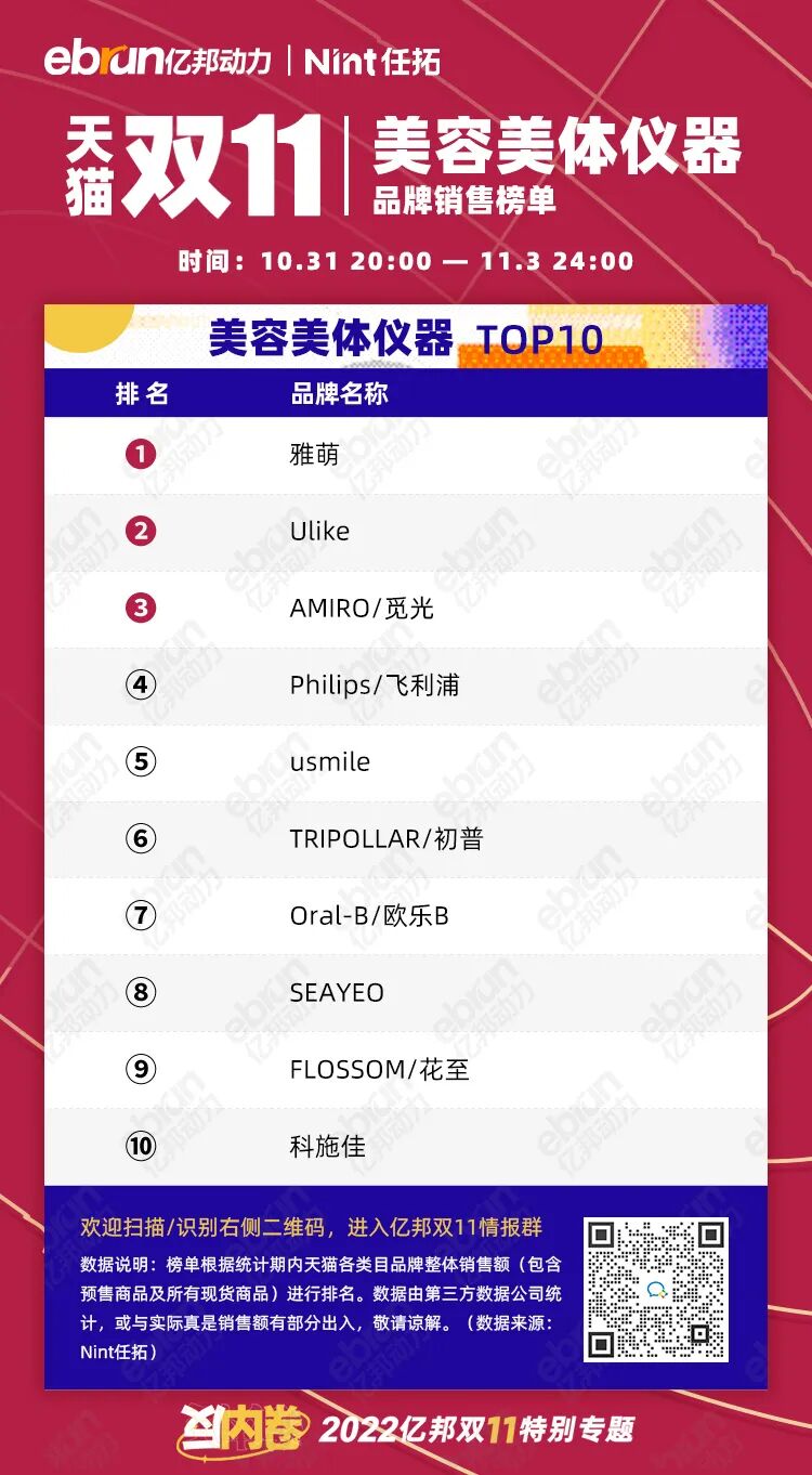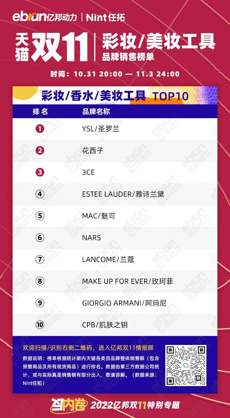 榜单根据统计期内天猫各类目品牌整体销售额(包含预售商品及所有现货商品)进行排名。数据由第三方数据公司统计,或与实际真是销售额有部分出入,敬请谅解。(数据来源:Nint任拓)