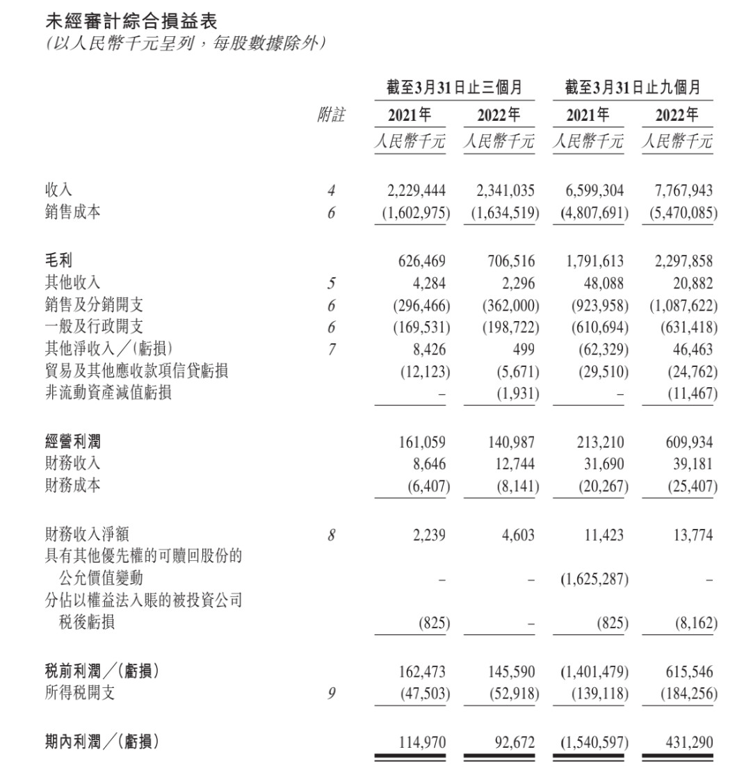 在疫情对发力线下的名创优品带去一定影响的情况下,营收层面还算不错,2022财年第三财季,名创优品集团总营收达23.4亿元人民币,同比增长5%。只是,与营收向好形成对比的,则是利润和净利润的双双下滑。