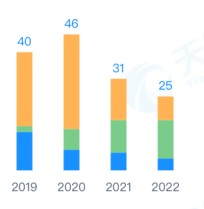 但近几年来,绿源集团在研发方面似乎后劲乏力。招股书显示,2019年至2022年上半年,绿源集团的研发费用分别为0.69亿元、0.83亿元、0.95亿元和0.44亿元,占总收入的比例分别为2.8%、3.5%、2.8%和2.2%。据天眼查数据显示,绿源电动车专利的申请数量也从2020年开始不断下降。