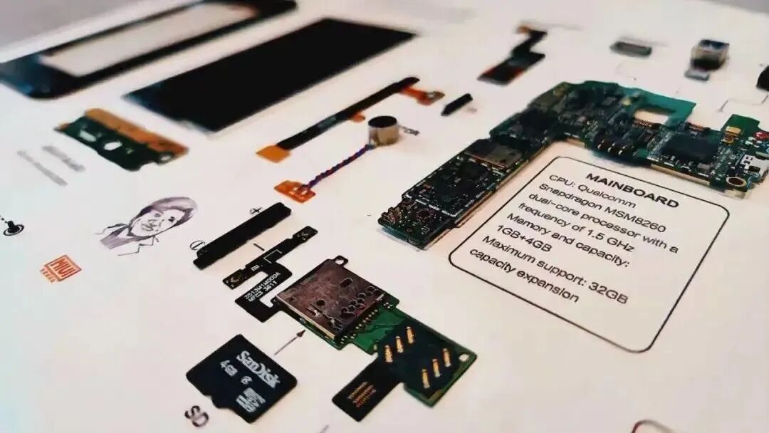 她把每一个手机全部拆开,里面的配件,都用标签标识好,非常精细地装裱在一个A3的框里,整个做得还极有美感。