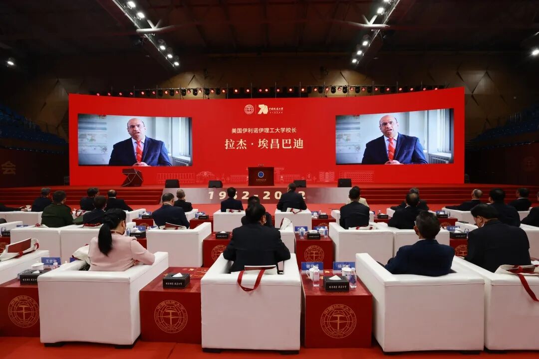 教育部党组成员、副部长孙尧视频致辞。湖北省政府党组成员、副省长、中国工程院院士邵新宇,武汉大学校长、中国科学院院士窦贤康,华中科技大学校长、中国工程院院士尤政,武汉市委常委、武汉经济技术开发区党工委书记、汉南区委书记刘子清,武汉市委常委、东湖新技术开发区党工委书记刘洁,武汉市人民政府党组成员、副市长王清华,两院院士孙和平、杨春和、殷鸿福、金振民、谢树成,国家部委和省市区有关单位领导,兄弟高校领导,合作单位领导,校友代表,学校老领导,全体校领导,党委常委,校长助理以及干部师生代表、媒体朋友等出席大会。