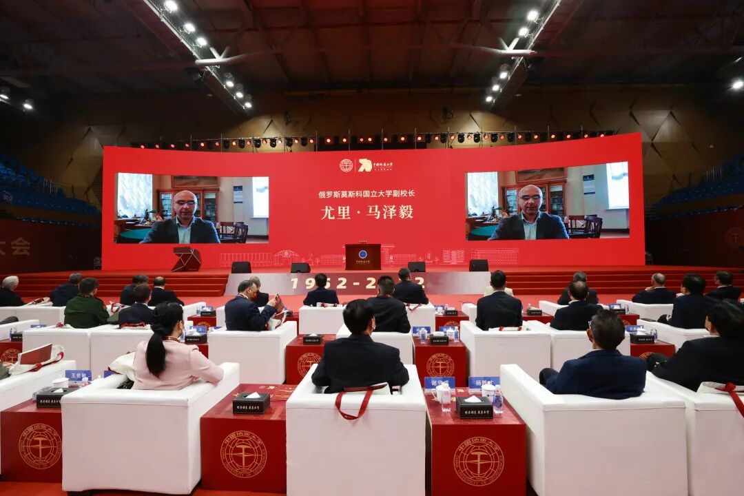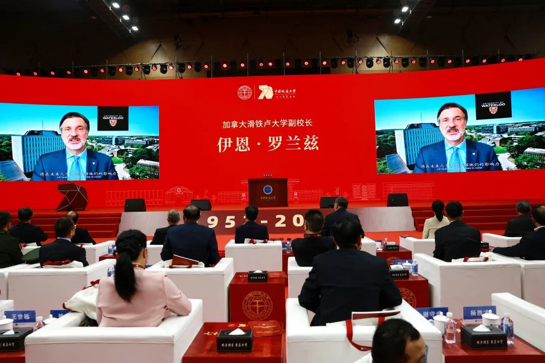 德国卡尔斯鲁厄理工学院校长霍尔格·汉塞尔卡、加拿大滑铁卢大学副校长伊恩·罗兰兹、美国伊利诺伊理工大学校长拉杰·埃昌巴迪、澳大利亚麦考瑞大学校长布鲁斯·道敦、俄罗斯莫斯科国立大学副校长尤里·马泽毅致辞,他们对中国地质大学70华诞表示热烈的祝贺。