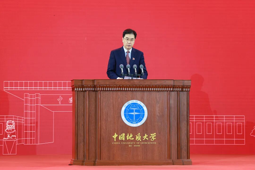湖北省政府党组成员、副省长、中国工程院院士邵新宇讲话。他指出,70年来,中国地质大学始终传承红色基因,坚守育人初心,坚持改革创新,服务地方发展。他希望,站在新的历史起点,学校始终胸怀大局,不断开拓创新,持续追求卓越,矢志创建一流,深度融入湖北,服务建设湖北,为建设全面构建新发展格局先行区提供更加有力的人才保障和科技支撑,争取早日建成地球科学领域世界一流大学。