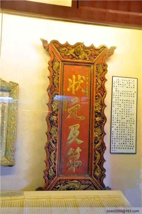 曲阜市中国状元文化博物馆,陈列珍贵文物近千件,展览面积一千余平方米,由四个展厅组成:“梅花香自苦寒来”厅展示了状元们艰辛的科考之路;“一日看尽长安花”厅展示了状元们丰富的文化生活。