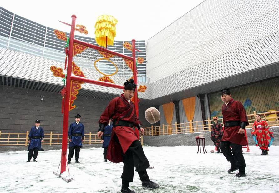 展览内容主要包括中国蹴鞠和近现代足球两大主题,由基本陈列和临时展览组成,共有文物1000余件(套),复原场景10余个,另有幻影成像设备,嘉年华互动游戏区及仿古蹴鞠表演等。