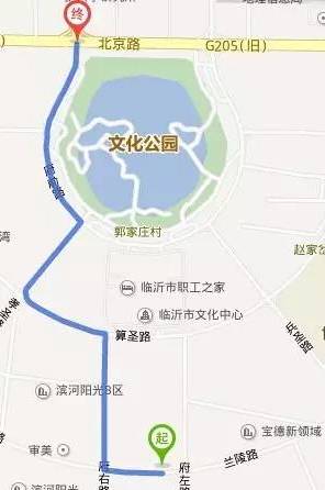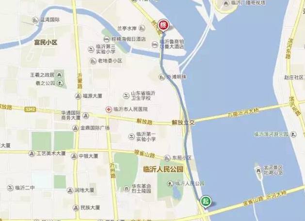 临沂大剧院--孝圣路--府前路--五洲胡北全程约2公里。