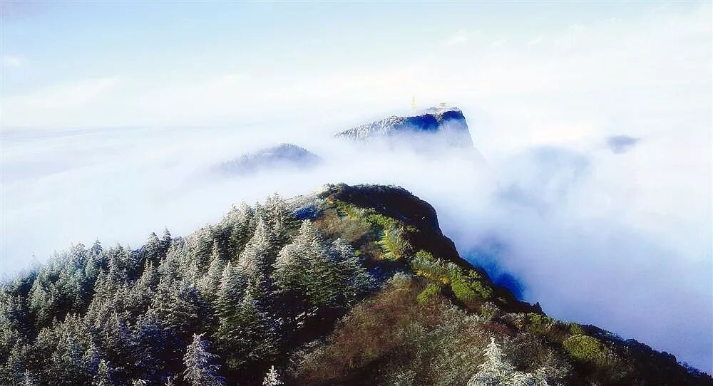 是那苍绿如盖的松柏,凌驾半空的缆车,
