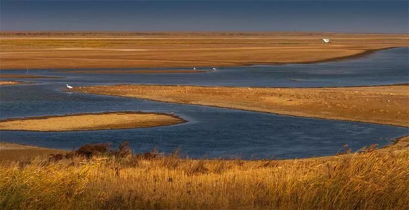 灰鹤、白鹳、野鸭争相觅食,筑巢栖息