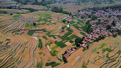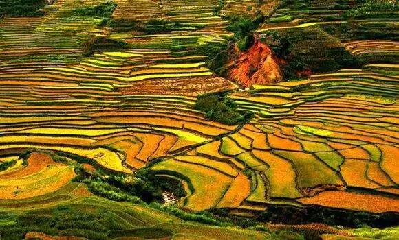 换上五彩斑斓服装的辉渠梯田最光彩夺目