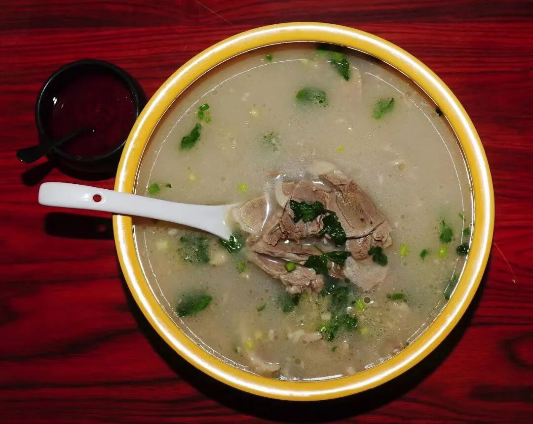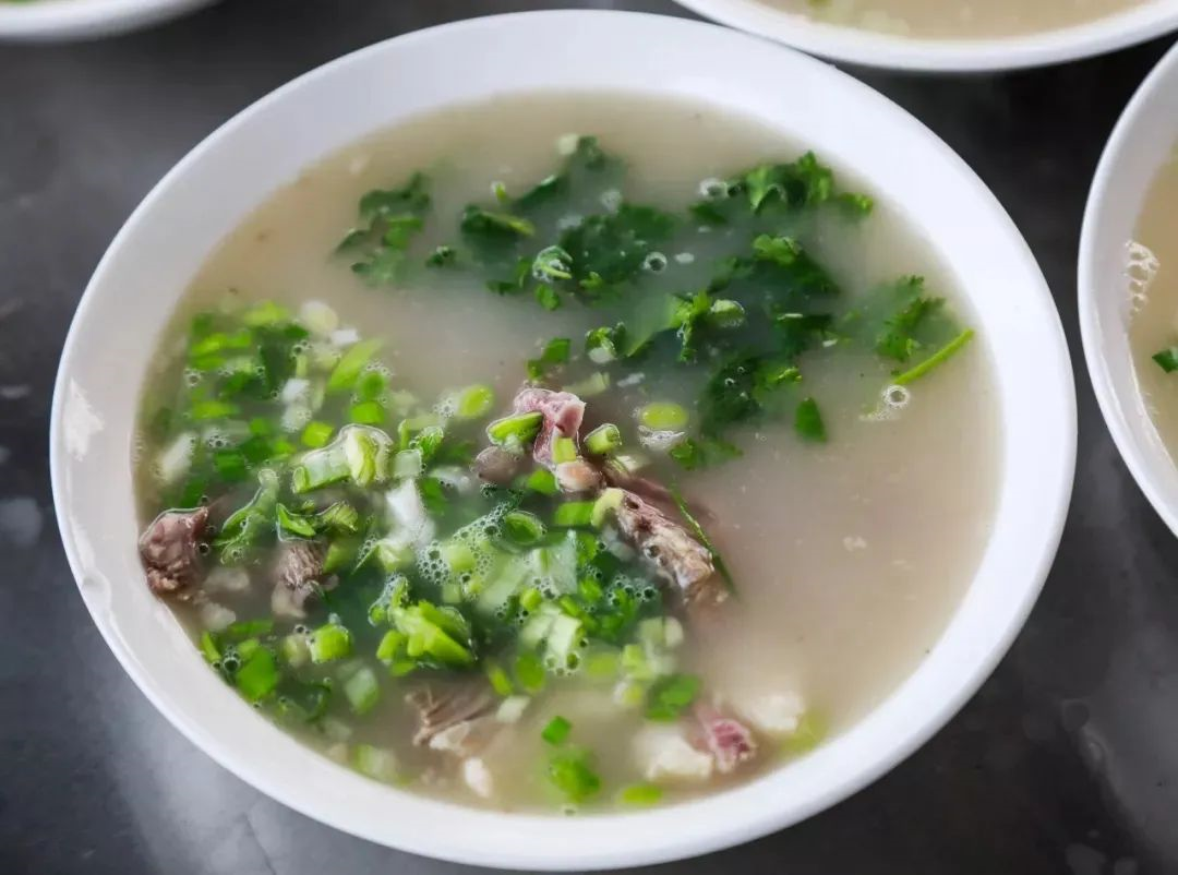 说起冬天必吃的特色菜,当属羊肉汤。一碗热气腾腾的羊肉汤端上桌来,雾气蒸腾,香味飘过老街小巷。“给你们多来点!”店老板总会亲切地把锅底的羊肉多舀一勺到碗里,就像在家里一样。