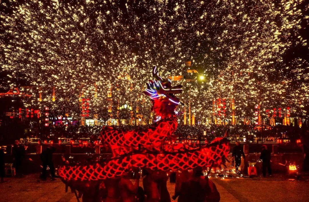 或许你能在古城中看到“火树银花”表演。那种漫天的璀璨,将墨色的夜空点燃,金花四溅,流光溢彩。夜空之下,如天女散花,绚丽而夺目。