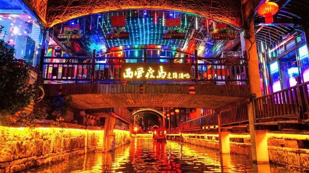 夜色渐浓,古城开始热闹活泼起来。乘摇橹船穿梭如画夜色中,听酒吧歌手浅吟低唱,沉浸在流光溢彩的夜生活中,近距离感受“一河渔火、歌声十里”的美景。