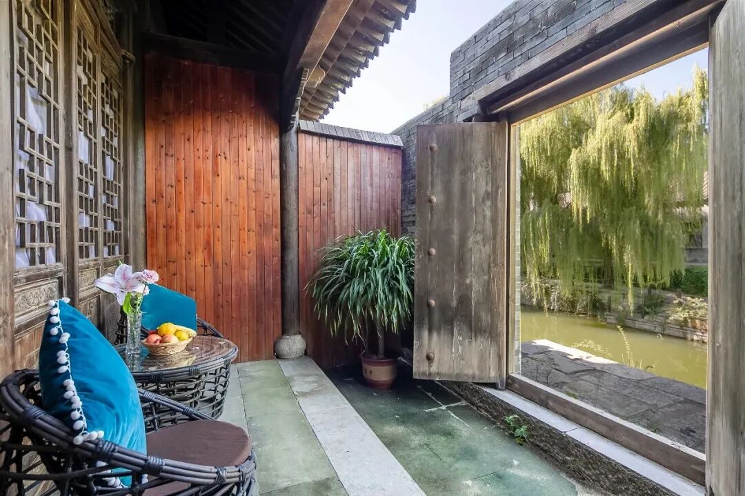 树木伸展着枝条,在绿树掩映下,时光都变得缓慢。古城里的烟火气和酒店里的静谧感形成了强烈的对比,传统和现代在这里汇聚、交融。