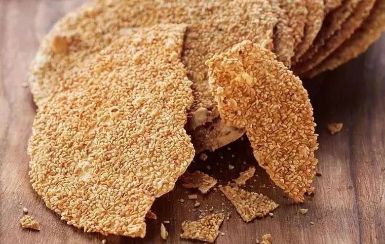 周村烧饼不同于其他地区烧饼,一张刚烤好的周村烧饼握在手中,热气之中的烧饼色黄形圆,饼皮薄如纸张。正面满是芝麻粒子,背面罗列着气口酥孔。
