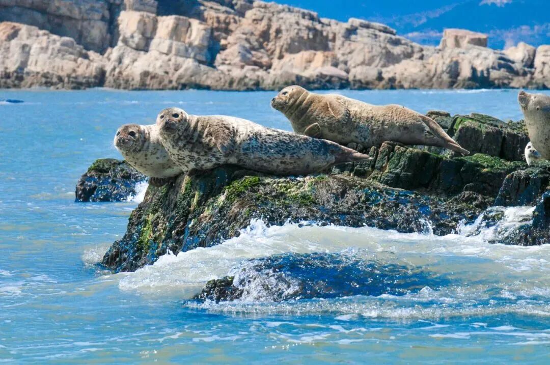 每年的11月份之后,大批斑海豹集群在中国辽东湾产崽;次年5月,再游出渤海,向东迁徙。长岛设有庙岛群岛海豹省级自然保护区,是海豹关键的洄游通道和索饵场,斑海豹通常于每年3月至5月在长岛停留。