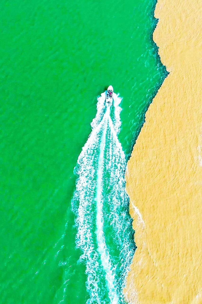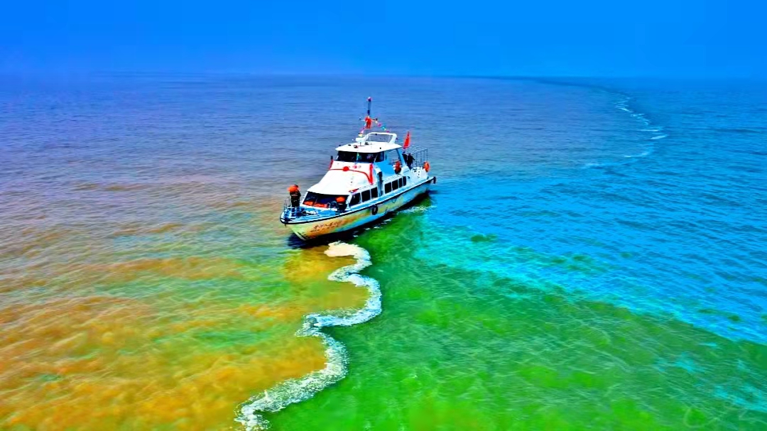 东营市黄河入海口分界线,有一种胜景奇观,浊黄的河水形如扇面,在湛蓝的海面上向东铺延,浩浩荡荡向前融入渤海,黄河水与碧蓝的大海缠绕交汇又泾渭分明,大自然的鬼斧神工任谁看了不惊叹!