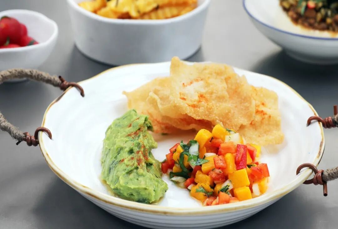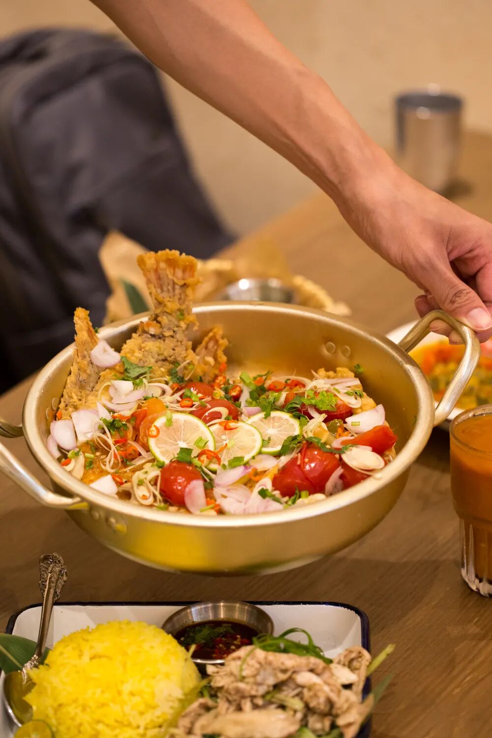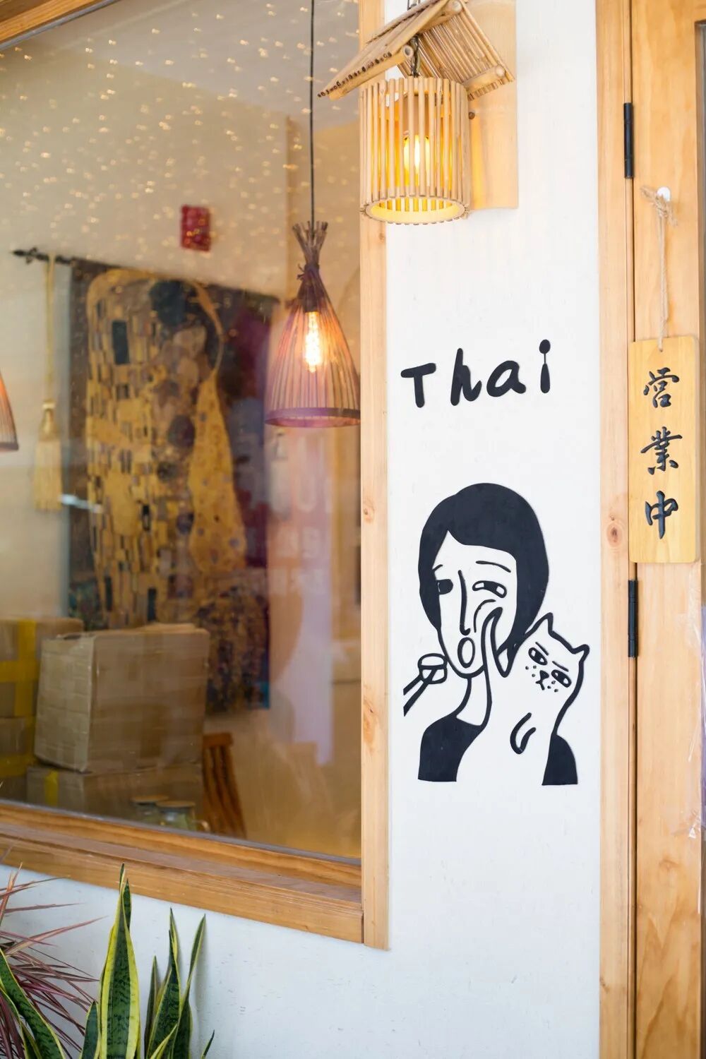 店铺整体装潢都是由老板亲自设计的,每个角落都充满故事。小屏风,藤条椅,充满东南亚风情。悬挂的灯罩花了几天几夜编织的,绝对找不到同款,桌上的纸巾筒,是曼谷的一个90岁老奶奶编织的,装食物的容器也是她在泰国杂货店淘的。