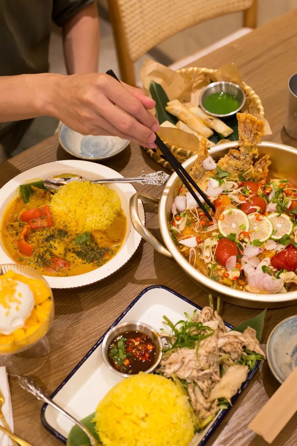 他们家还能吃到多款泰国菜,自有秘方熬煮的黄咖喱鸡肉饭,酸辣滋味的泰式红星斑,香脆可口的鲜虾炸春卷,还有夏天必不可少的椰子雪糕。每道菜都是老板亲自到泰国学习,再经过本土化改良而成的,人均50就能吃到饱。