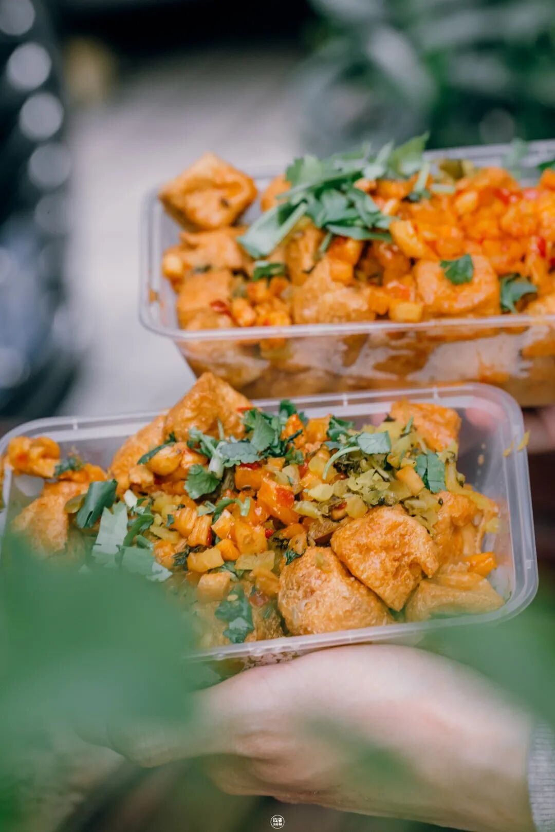 “老板,中份臭豆腐,一点点辣就好”