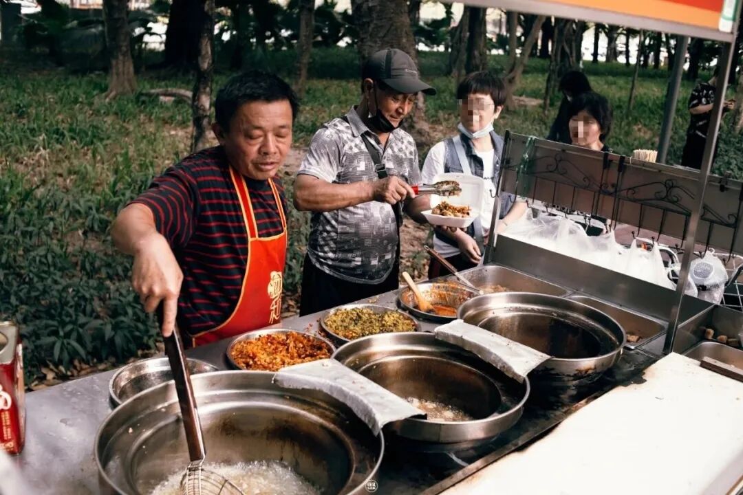王老头非常能侃,有人称他为臭豆腐届的段子手。所以除了臭豆腐的“香气”,经过还能听到老头跟客人聊天爽朗的声音。附近很多上班族和学生,下班放学经过都会来点个小份的臭豆腐,跟老头聊几句再走。这或许就是他们忙碌一天后,最轻松的时刻。