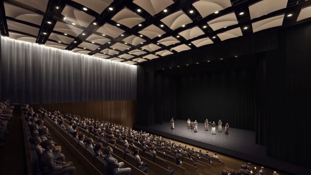 广州云幕剧场效果图作为购物中心自营主力店,剧场整体面积约为1400平方米,配置有主剧场、排练厅等。剧场室内以木色、暖色调为主,打造温暖柔和的空间氛围。吊顶则是采用了木饰面穿孔铝塑板和54块木色UHPC弧形反声板,起到吸声作用的同时降低前厅的杂音,给观众进入剧场前带来自然柔和的舒适感。纵观当下市场,在热度上不输“巨无霸”型商业项目的商业类型,或许非街区/Mall+街区型商业项目莫属。对于这些超大空间或是半开放、开放式空间,不少从业者会采取跨层或是打造独栋的方式,安置高标旗舰店。而这些国内外大牌通过跨层、独栋打造大店模型,也能提升购物中心的首店指数和差异化体验。