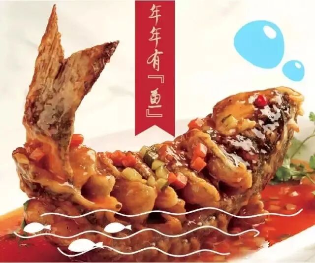“年年有鱼”,鱼,寓意年年有余,“余”不仅仅代表有盈余,也象征着降妖除鬼。南方家庭年夜饭上总有这道菜。