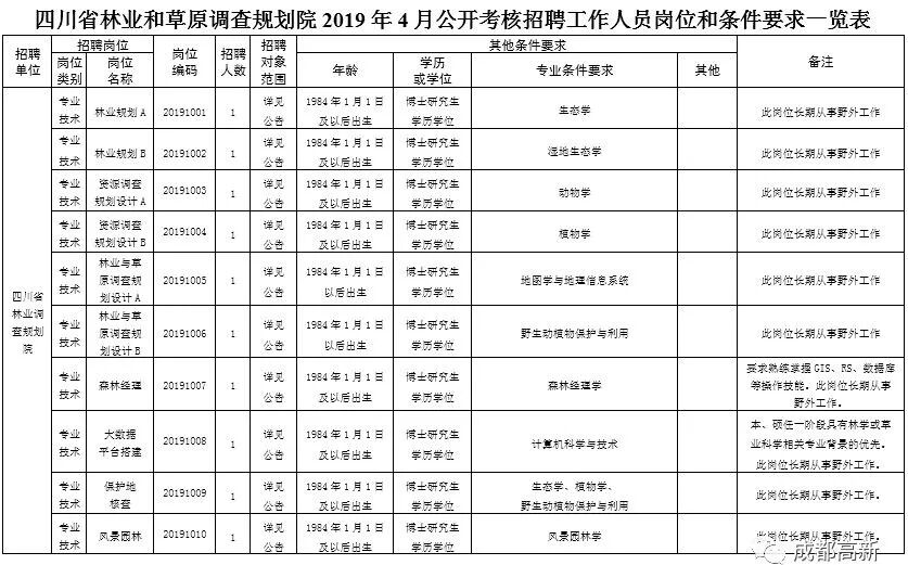 报考者若符合多个岗位条件要求,可同时报考,并将该岗位《四川省林业和草原局直属事业单位2019年公开考核招聘工作人员报名登记表》填写后发至50627859@qq.com邮箱。