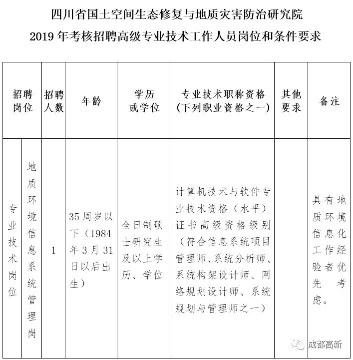 ①《四川省国土空间生态修复与地质灾害防治研究院2019年公开考核招聘工作人员报名表》