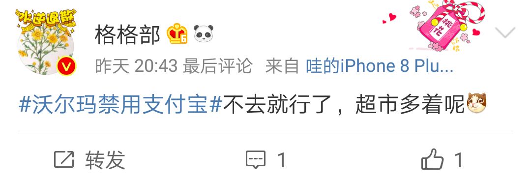 无论是沃尔玛,还是步步高,禁止使用支付宝,只能用微信支付,说到底还是利益使然,不过是利益攻守同盟的选择。