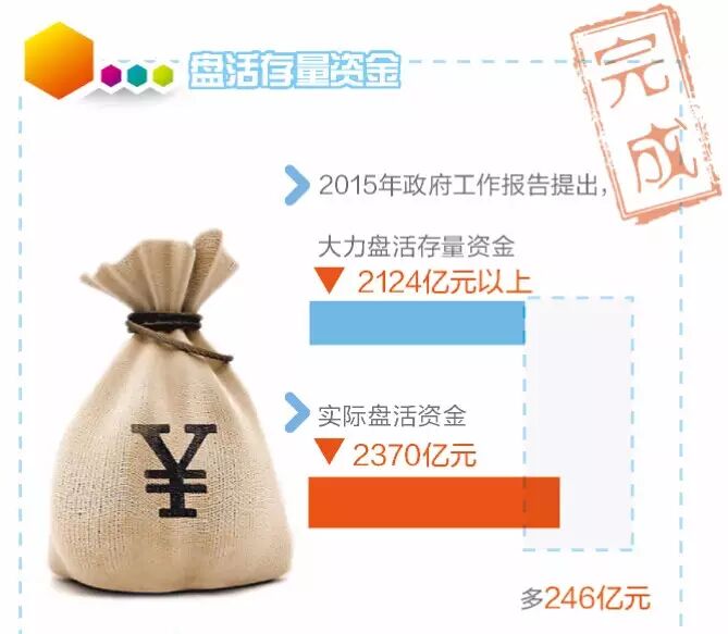 2015年,国务院多次部署财政资金统筹使用和盘活存量资金,把唤醒的资金用在“刀刃”上。当年年初,国务院办公厅发布了《关于进一步做好盘活财政存量资金工作的通知》。其后,国务院印发了《推进财政资金统筹使用方案》,提出了包括推进项目资金统筹使用、重点科目资金统筹使用、部门资金统筹使用等10条重要措施。财政部也组织开展地方盘活财政存量资金有关情况专项检查活动,审计署也组织全国审计机关对相关政策措施贯彻落实情况进行跟踪审计。2015年7月8日召开的国务院常务会议也部署整改审计查出的问题,强调把宝贵的公共资金资源用到促发展、惠民生上。
