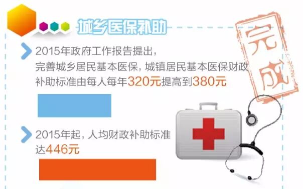 2015年政府工作报告提出,“完善城乡居民基本医保,财政补助标准由每人每年320元提高到380元。”《经济日报》记者从人力资源和社会保障部获悉,我国医保的人均补助标准已经达到446元。