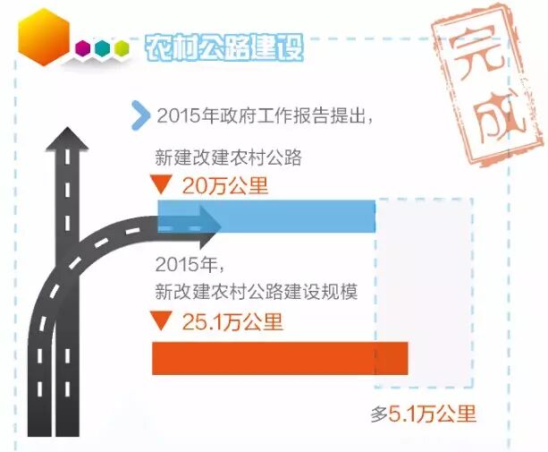 2015年政府工作报告提出,再解决6000万农村人口饮水安全问题,新建改建农村公路20万公里。数据显示,去年共解决6433.6万农村人口饮水安全问题,新改建农村公路25.1万公里。