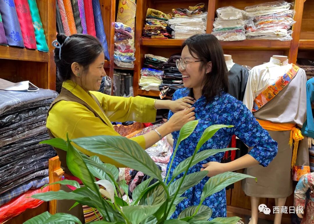 “以前光顾我们店的主要是本地居民,如今店里多了不少游客,他们要么是专程过来买藏装的,要么是过来拍照留念的,都是沿着习近平总书记的足迹过来‘打卡’的。”卓玛笑着说。如今的朵究仓藏装店,已经成了闻名区内外的“网红店”。