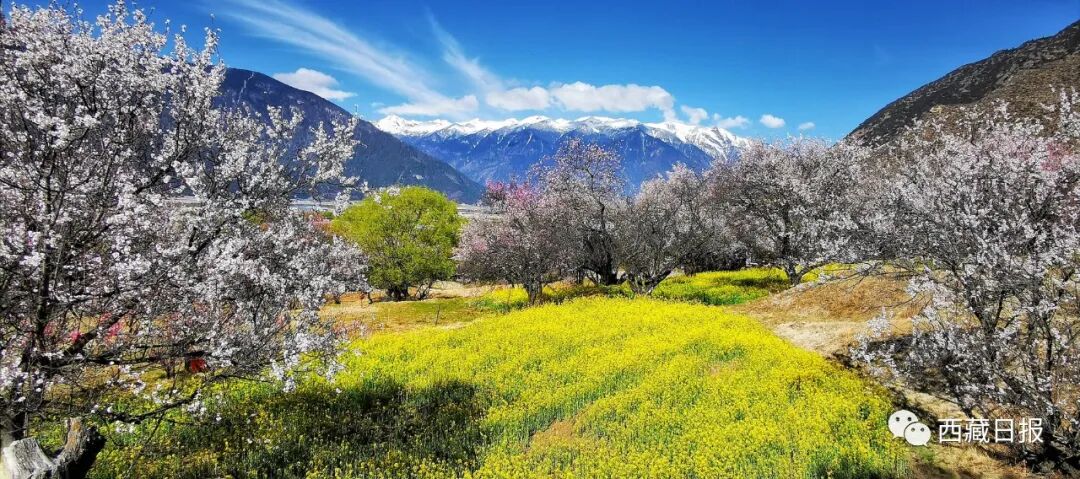 在尼洋河畔、318国道边,粉嫩嫩的桃花、金灿灿的油菜花,与绿油油的田野交相辉映,构成了一幅色彩斑斓、生机勃勃的乡村美景,映衬着嘎拉人犹如桃花盛开般灿烂的笑脸,诉说着乡村振兴带来的幸福光景。