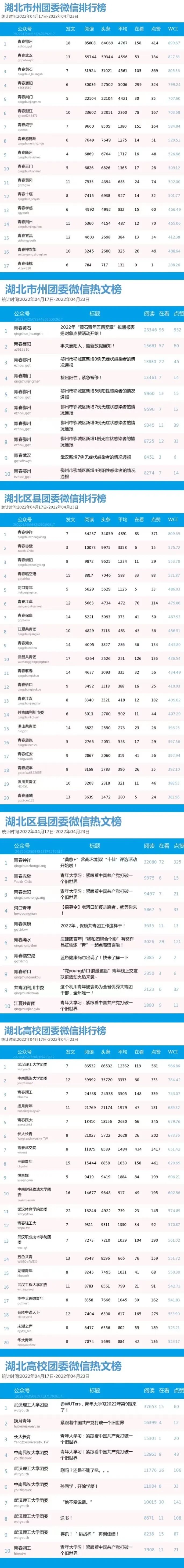 上一期网上团课,在市州团组织中,十堰市以参学率131.54%领跑排行榜,神农架林区、襄阳市、咸宁市、恩施州、潜江市、黄石市紧随其后,参学率均超过100%。