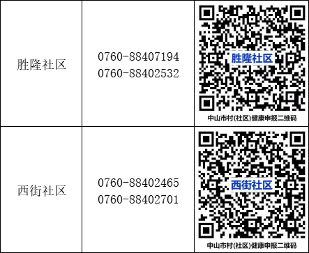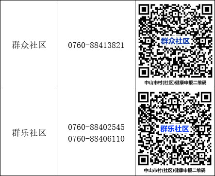 线下咨询可到各村(社区)党群服务中心,健康申报可扫下列二维码进行: