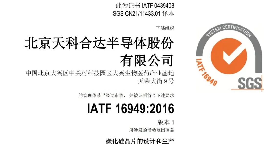 今后,「天科合达」将继续全面贯彻IATF 16949:2016质量管理体系,不断完善管理,提高产品品质,为市场竞争和合作提供高标准的质量体系保障,为客户提供高质量的产品和服务。