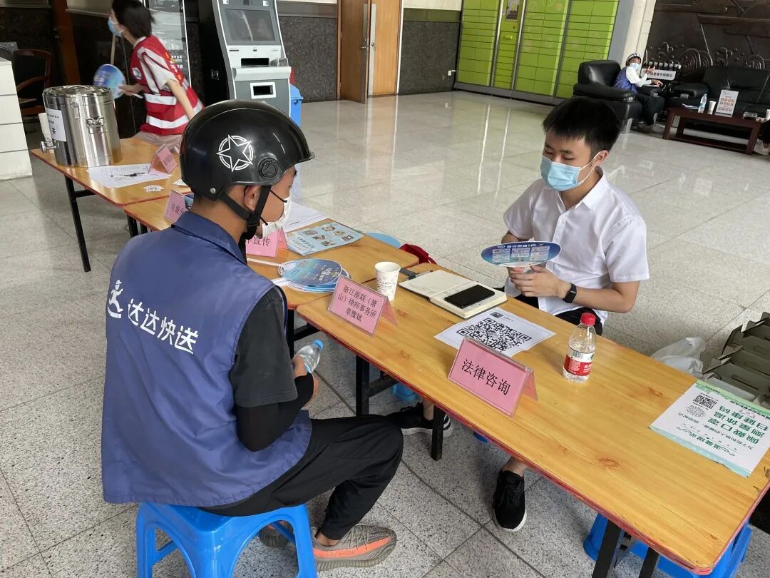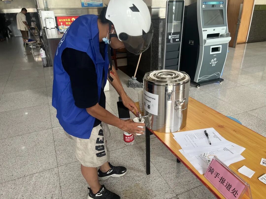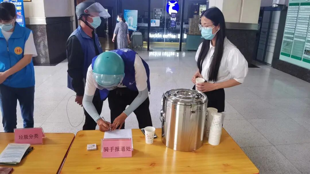 除了绿都世贸广场写字楼,社区还协同辖区企业东馆国医馆及众安慈善基金会,设立骑手驿站分站点。在东馆国医馆为骑手提供测量血压、提供饮水、健康咨询、用药指导等暖心服务。每逢双号,东馆国医分驿站内开展常态化核酸采样。
