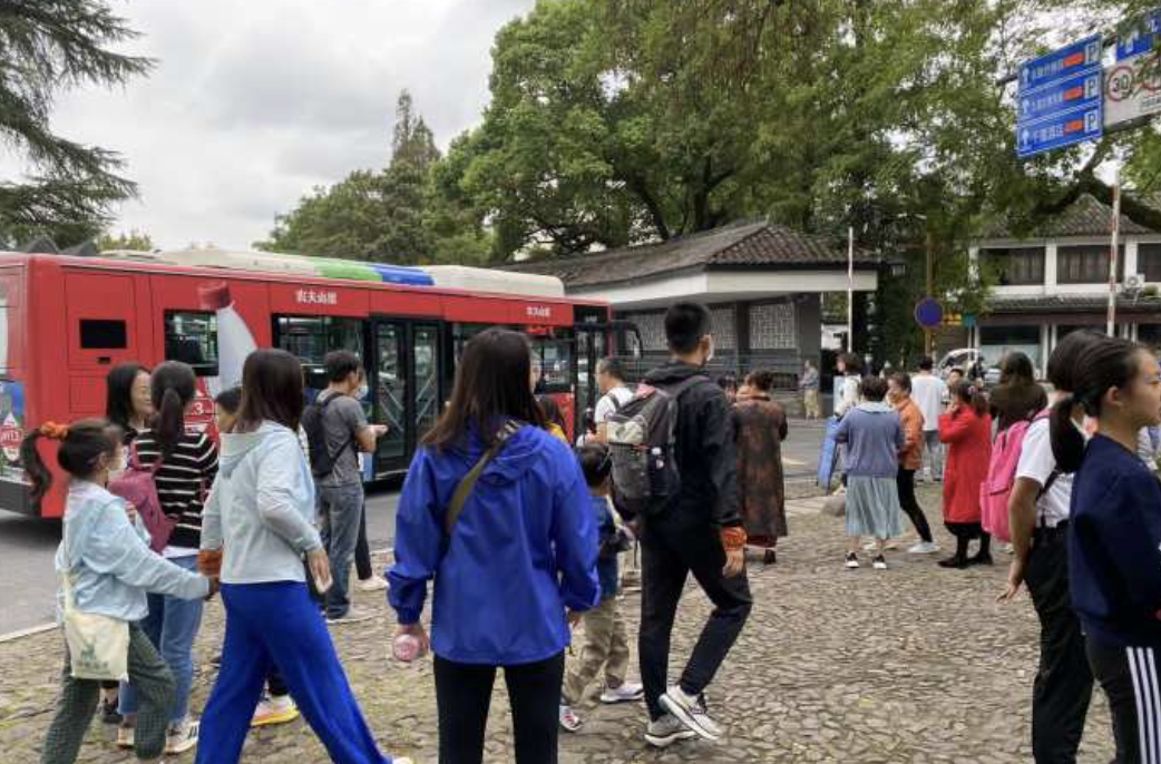 有些是和家人朋友结伴同行,也有跟团旅游的,导游招呼着大家集合准备出发。