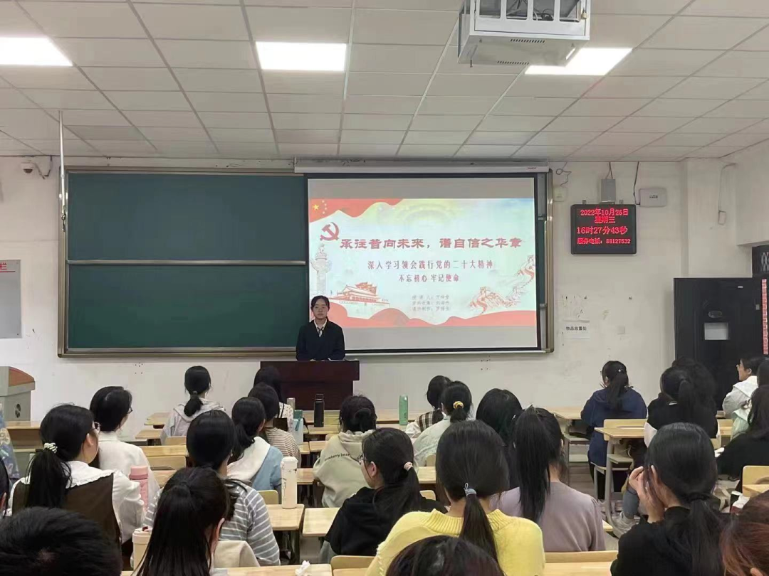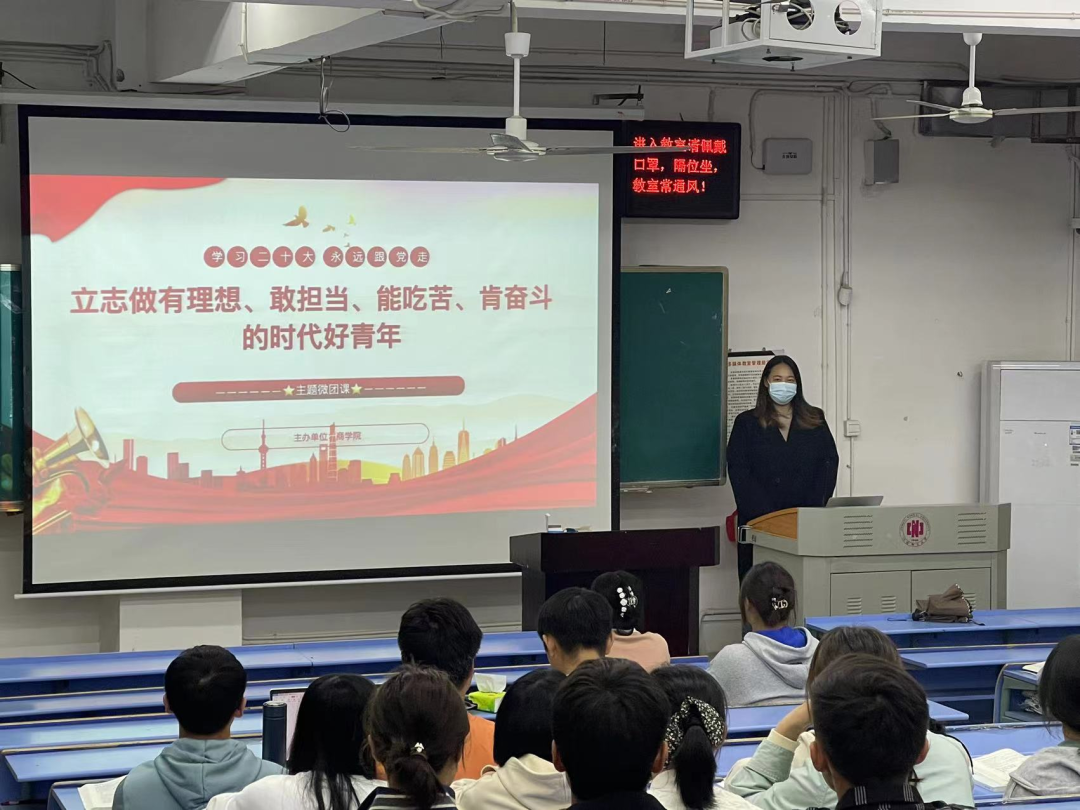 党的二十大胜利召开以来,校团委认真部署和推进党的二十大精神学习宣传,以团支部为单位开展组织化学习,推进学习宣传覆盖全体团员青年。结合青年群体的思想和学习特点,推出以党的二十大精神为主要内容的专题“微团课”,全校各团支部充分运用课前5分钟时间,以团支部书记讲团课的形式,带领团员青年一起学习党的二十大报告和习近平总书记重要讲话精神。从10月19日起,活动迅速在全校开展,各团支部运用鲜活的形式学习、宣讲和阐释党的二十大精神,受到团员青年的欢迎。