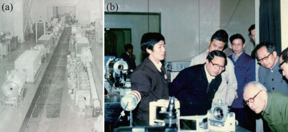 图 3 星光-I激光装置 (a)星光-I激光装置激光大厅;(b)王淦昌教授视察星光-I激光装置