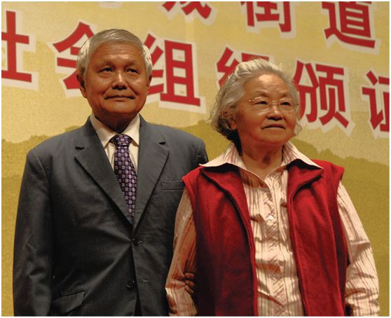 ▲2009年郝柏林、张淑誉在上海新江湾城居委会组织的金婚庆祝活动上